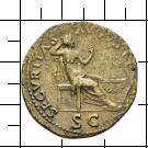 SECVRITAS - AVGVSTI. Securitas thronend n. r., rechter Arm auf Thronlehne ruhend den Kopf stützend, in linker Hand Szepter, vor ihr rechts entzündeter, mit Girlande geschmückter Altar, davor brennende Fackel, im Abschnitt S C; Perlkreis. |