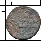 VESTA. Vesta verschleiert, thronend n. l., in der rechter Hand Opferschale (Patera), in linker Hand Szepter, im Feld S - C; Perlkreis. |