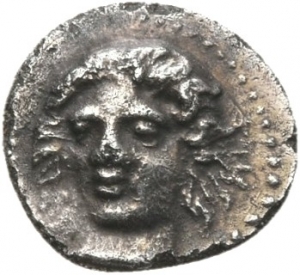 Vorderseite: Weiblicher Kopf in Dreiviertelansicht n. l.; Perlkreis.